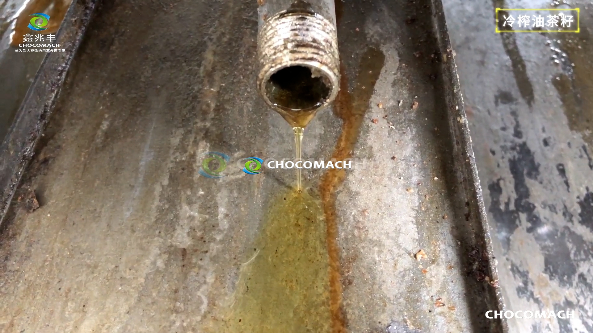 鑫兆豐YZW-2全自動(dòng)茶籽仁直接冷榨現(xiàn)場(chǎng)--冷榨出油↑