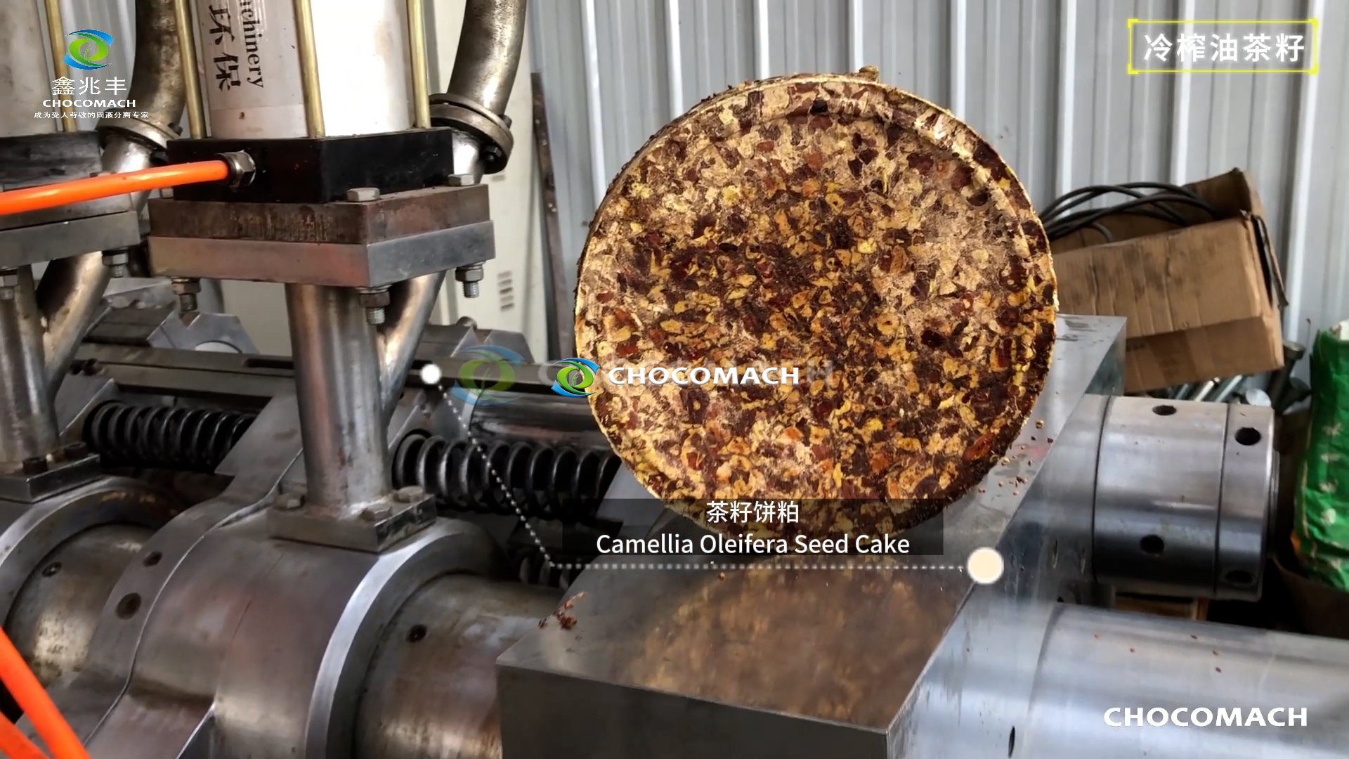 鑫兆豐YZW-2全自動(dòng)茶籽仁直接冷榨現(xiàn)場(chǎng)--茶籽餅粕 ↑