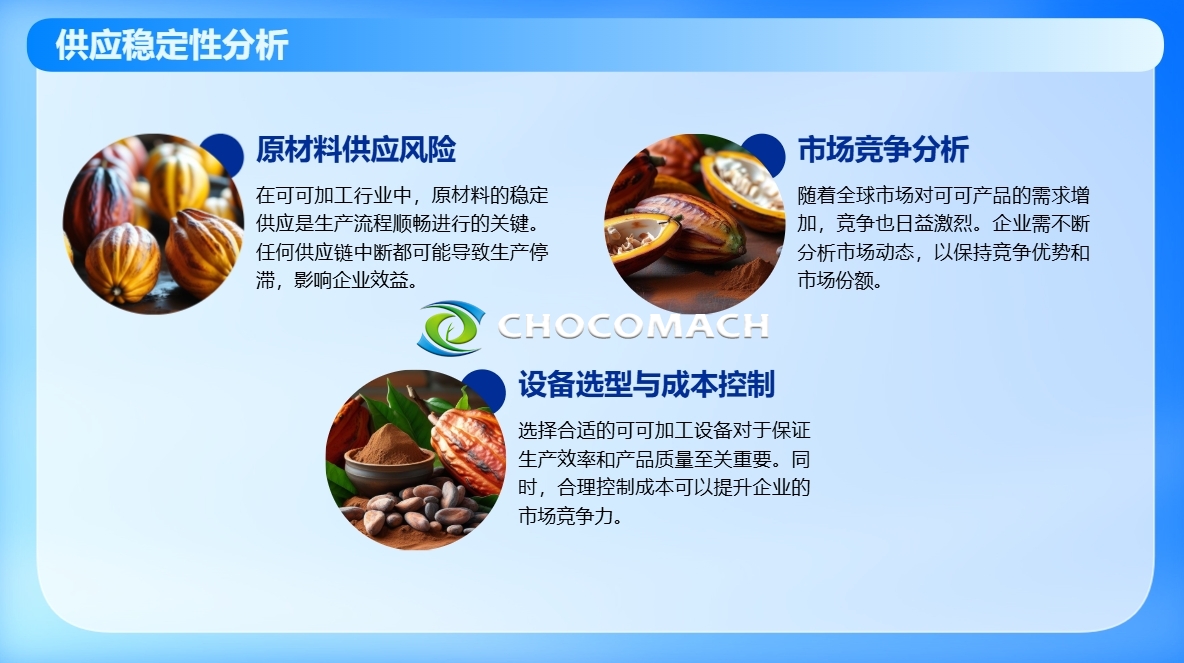 針對不同國家和地區(qū)的可可豆特性,企業(yè)應(yīng)選擇能夠提供定制化解決方案的設(shè)備制造商。這不僅能提高設(shè)備的適配性,還能優(yōu)化生產(chǎn)流程。